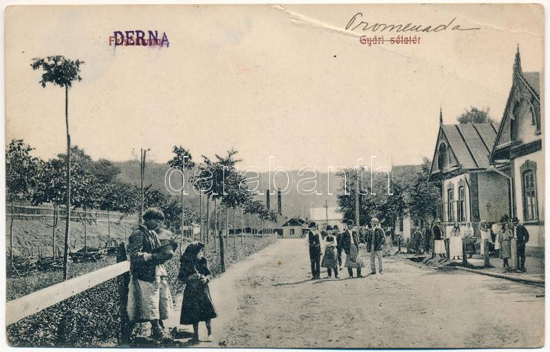1934 Felsőderna, Derna (Bihar, Bihor); gyári sétatér / factory promena... https://www.darabanth.com/de/41-Gross-Auktion/41.1/Ansichtskarten/Siebenburgen~16959/1934-Felsoderna-Derna-Bihar-Bihor-gyari-setater-factory-promenade-szakadas-tear~II2987204
