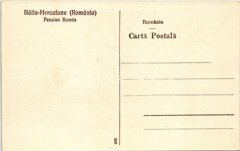 Herkulesfürdő, Baile Herculane; Pension Romée / szálloda / hotel https://www.darabanth.com/de/41-Gross-Auktion/41.1/Ansichtskarten/Siebenburgen~16959/Herkulesfurdo-Baile-Herculane-Pension-Romee-szalloda-hotel~II3008537