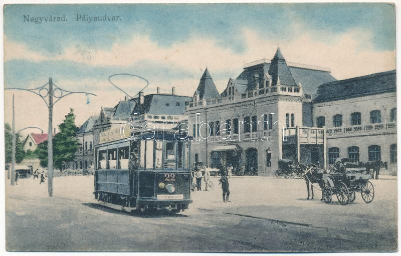 Nagyvárad, Oradea; Pályaudvar, vasútállomás, villamos / railway statio... https://www.darabanth.com/de/41-Gross-Auktion/41.1/Ansichtskarten/Siebenburgen~16959/Nagyvarad-Oradea-Palyaudvar-vasutallomas-villamos-railway-station-tram-fl~II3006715