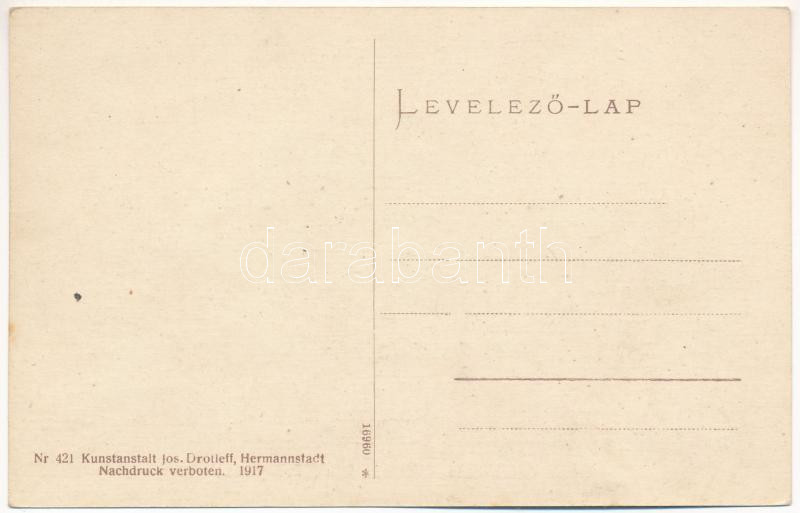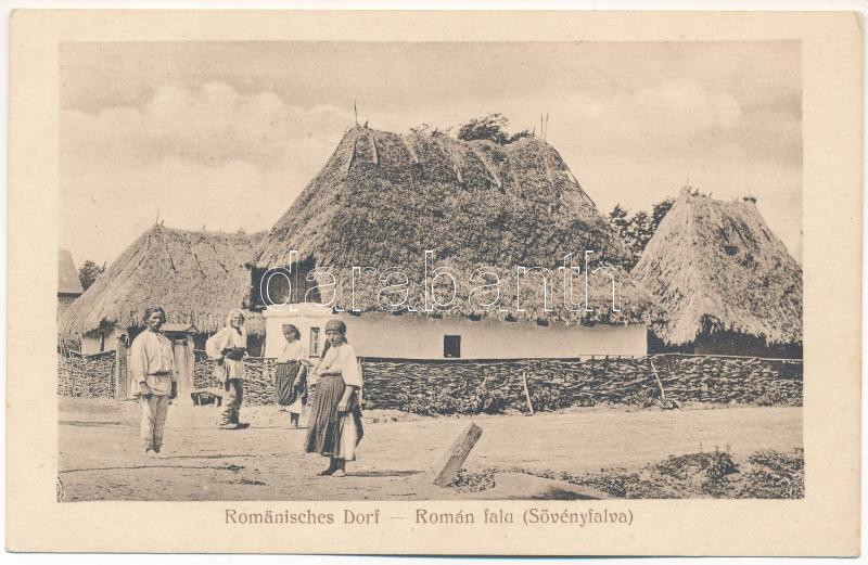Beschreibung: Sövényfalva, Zeunen, Cornesti (Ádámos, Adamus); Romänisches Dorf / Román falu, népviselet. Nr. 421. Kunstanstalt Jos. Drotleff 1917 / Romanian village, folklore
