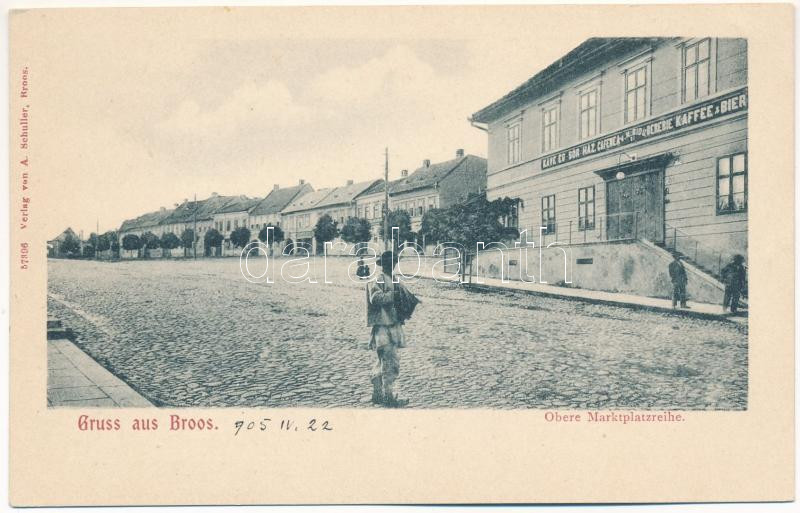 Beschreibung: Szászváros, Broos, Orastie; Obere Marktplatzreihe. A. Schuller / Felső piac tér, V.N. Bidu si kávé és sörháza / cafe and beer hall