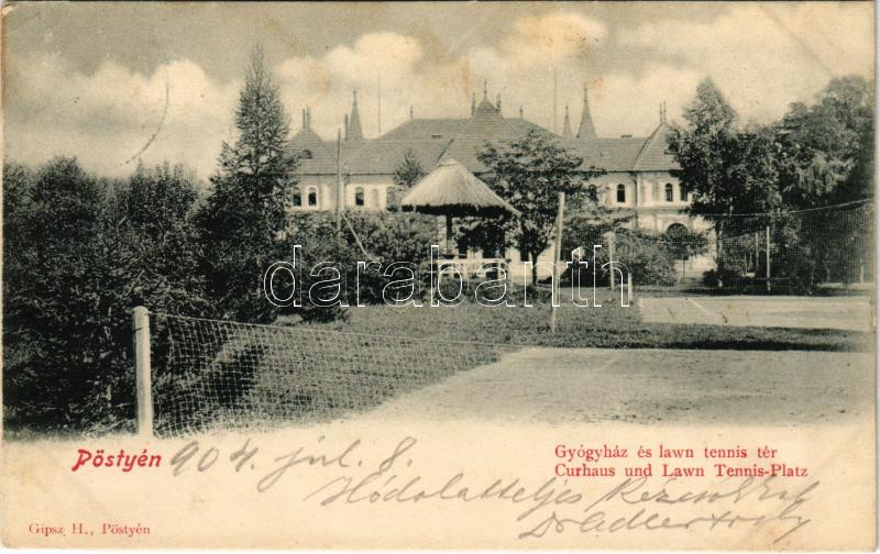 1904 Pöstyén, Piestany; Gyógyház és lawn tennis tér, tenisz pálya. Gip... https://www.darabanth.com/de/41-Gross-Auktion/41.1/Ansichtskarten/Slowakei~16960/1904-Postyen-Piestany-Gyogyhaz-es-lawn-tennis-ter-tenisz-palya-Gipsz-H-spa-sanatorium-~II2991452
