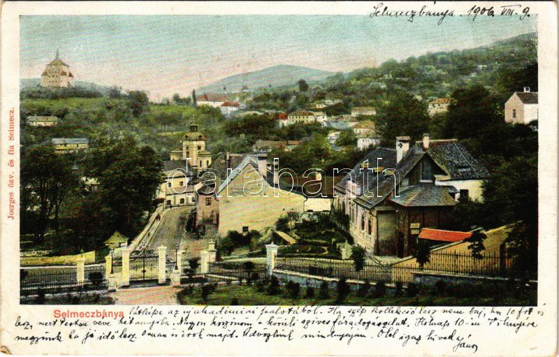 Beschreibung: 1906 Selmecbánya, Schemnitz, Banská Stiavnica; látkép. Joerges özv. és fia kiadása / general view (ázott sarkak / wet corners)