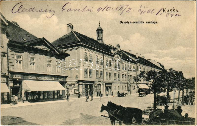 1910 Kassa, Kosice; Orsolya rendiek zárdája, Grossmann Sá. utóda és Kl... https://www.darabanth.com/de/41-Gross-Auktion/41.1/Ansichtskarten/Slowakei~16960/1910-Kassa-Kosice-Orsolya-rendiek-zardaja-Grossmann-Sa-utoda-es-Klein-Lajos-uzlete-piac-~II2978949