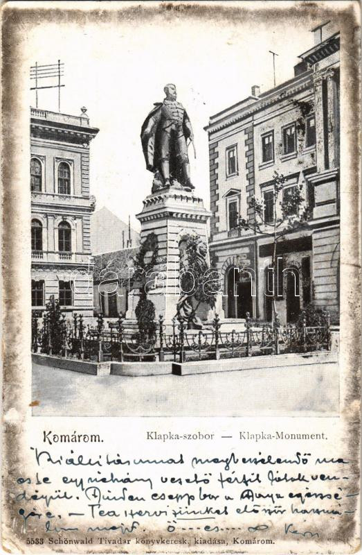 1910 Komárom, Komárnó; Klapka szobor. Schönwald Tivadar kiadása / monu... https://www.darabanth.com/de/41-Gross-Auktion/41.1/Ansichtskarten/Slowakei~16960/1910-Komarom-Komarno-Klapka-szobor-Schonwald-Tivadar-kiadasa-monument-EB~II2991498