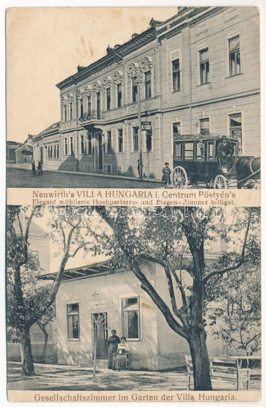1912 Pöstyén, Pistyan, Piestany; Neuwirth-féle Villa Hungária a központban, társalgó a kertben / Neuwirth's Villa Hungaria i. Centrum Pöstyén's, Gesellschaftszimmer im Garten der Villa / villa, hotel, parlor room (Rb)