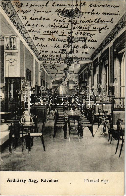 1913 Kassa, Kosice; Andrássy Nagy Kávéház belső, Fő utcai rész. Hátold... https://www.darabanth.com/de/41-Gross-Auktion/41.1/Ansichtskarten/Slowakei~16960/1913-Kassa-Kosice-Andrassy-Nagy-Kavehaz-belso-Fo-utcai-resz-Hatoldalon-musor-reklam-~II2978698