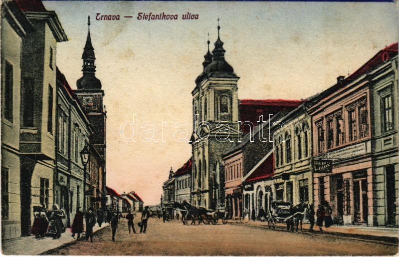 1920 Nagyszombat, Tyrnau, Trnava; Stefanikova ulica / utca és templom,... https://www.darabanth.com/de/41-Gross-Auktion/41.1/Ansichtskarten/Slowakei~16960/1920-Nagyszombat-Tyrnau-Trnava-Stefanikova-ulica-utca-es-templom-Varostorony-Adolf-Horovitz~II3007978