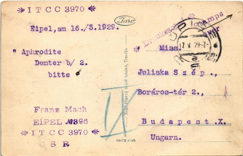 1929 Trencsén, Trencín; vasút a vár alatt / railway under the castle. ... https://www.darabanth.com/de/41-Gross-Auktion/41.1/Ansichtskarten/Slowakei~16960/1929-Trencsen-Trencin-vasut-a-var-alatt-railway-under-the-castle-TCV-card-EK~II3007983