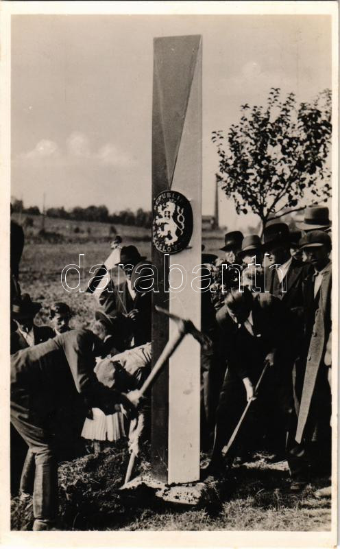 1938 Ipolyság, Sahy; bevonulás, magyar zászló "A Felvidék felszabadulásának első örömünnepe" / entry of the Hungarian troops, flag + "1938 Az első visszatért magyar város Ipolyság" So. Stpl.