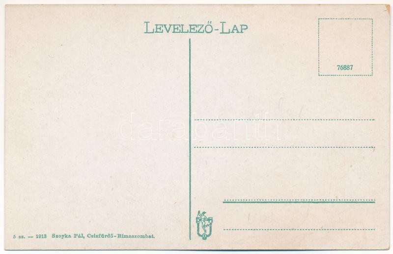Csíz, Csízfürdő, Cíz Kúpele; Erzsébet szálloda, Grósz zsidó vendéglője, kóser étterem. Szoyka Pál kiadása 5. sz. 1913. / hotel and Jewish kosher restaurant (EK)