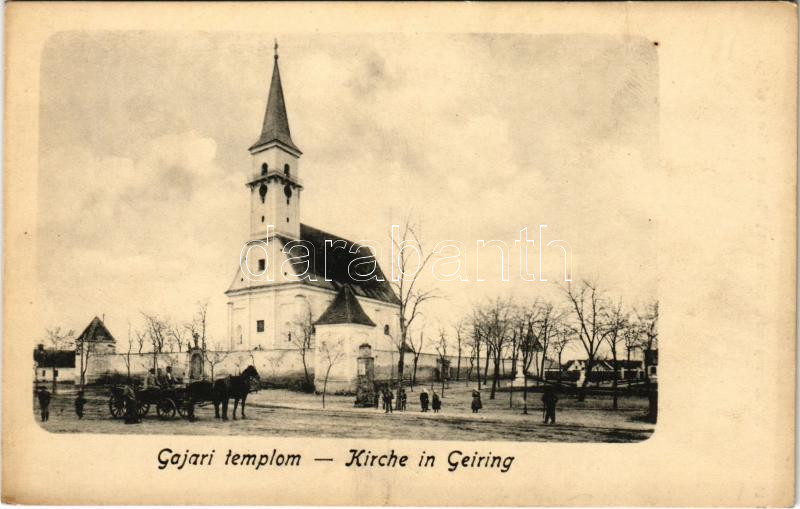 Beschreibung: Gajar, Geiring, Gairing, Gajary; templom. Malaczkai könyvnyomda, Wiesner A. kiadása / church