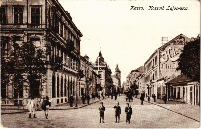 Kassa, Kosice; Kossuth Lajos utca, Holzer üzlete / street, shops (EK) https://www.darabanth.com/de/41-Gross-Auktion/41.1/Ansichtskarten/Slowakei~16960/Kassa-Kosice-Kossuth-Lajos-utca-Holzer-uzlete-street-shops-EK~II3005245