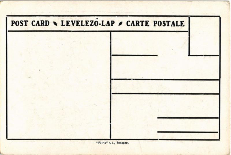 Kassa, Kosice; Magyar, tót és német nemzetiségek népesség aránya. Címer, Pátria rt. kiadása / Percentage of Hungarian, Slovakian and German population. Irredenta art postcad with coat of arms s: Pólya Tibor (EK)