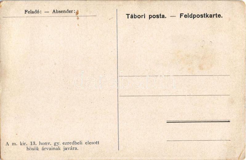 Pozsony, Pressburg, Bratislava; M. Kir. Pozsonyi 13. Honvéd Gyalog Ezred tábori posta és segélylap / Hungarian military field post and charity card s: J. Bortstieber (EK)