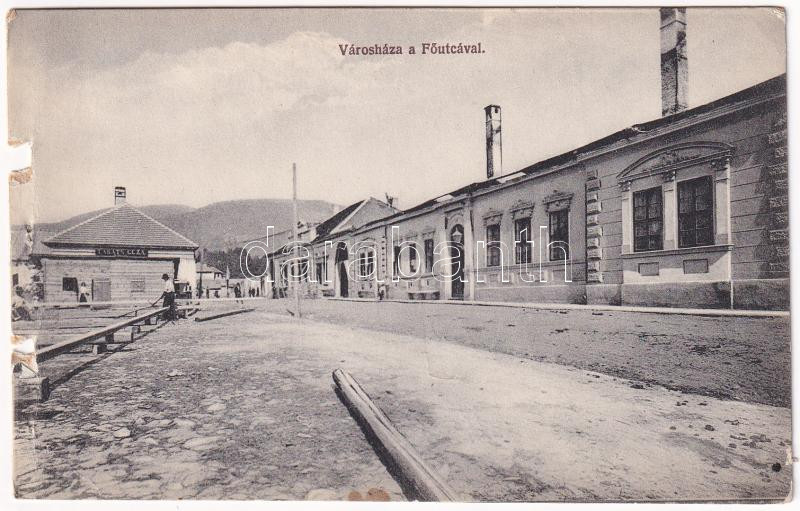 Rimakokova, Kokava nad Rimavicou; Takáts Géza üzlete, városháza és Fő utca az 1911. augusztus 3-i tűzvész után / shop, town hall and main square after the 1911 fire (non PC) (b)