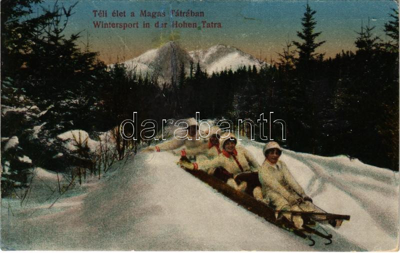 Tátra, Vysoké Tatry; Téli élet a Magas Tátrában, irányítható szánkó, t... https://www.darabanth.com/de/41-Gross-Auktion/41.1/Ansichtskarten/Slowakei~16960/Tatra-Vysoke-Tatry-Teli-elet-a-Magas-Tatraban-iranyithato-szanko-tobogansport-wint~II2991990