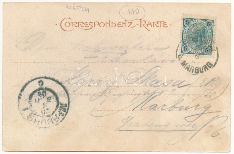 Beschreibung: 1904 Limbus, Lembach (Maribor, Marburg); Gasthaus Robic / restaurant and hotel. Heinrich Krapek No. 35. Art Nouveau, floral (fl)