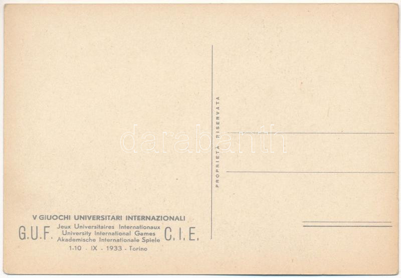 Littoriali Torino V Giuochi Universitari Internazionali 1933 / G.U.F. University International Games, American football, humour / Amerikai foci, olasz sport humor s: Franco Garelli