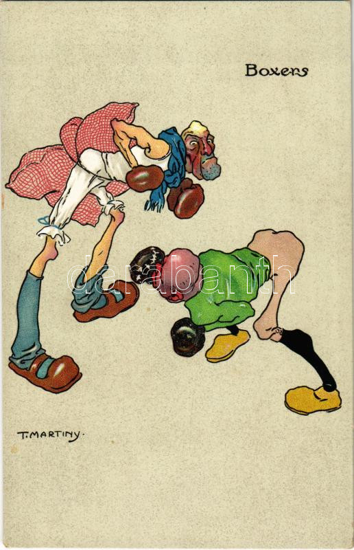 Ökölvívók / Boxers, sport humor. P. & C.M. Serie 116. litho s: T. ... https://www.darabanth.com/de/41-Gross-Auktion/41.1/Ansichtskarten/Sport~16994/Okolvivok-Boxers-sport-humor-P-CM-Serie-116-litho-s-T-Martiny~II3008476