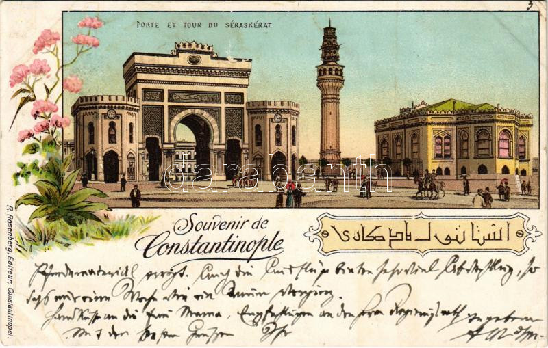 Beschreibung: 1898 (Vorläufer) Constantinople, Istanbul; Porte et Tour du Séraskérat / Beyazit tower and gate. R. Rosenberg Art Nouveau, floral, litho (EK)