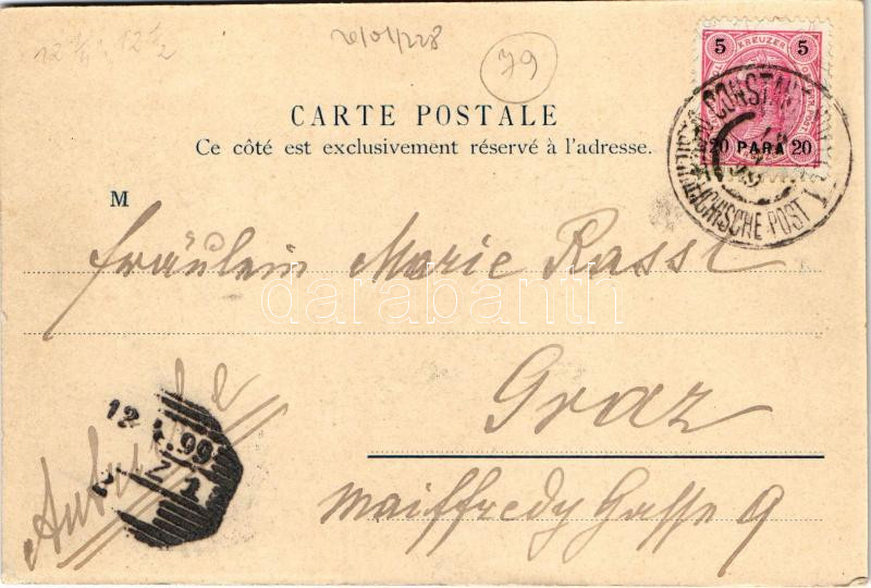 1899 (Vorläufer) Constantinople, Istanbul; Pont de Kara-Keni / Galata ... https://www.darabanth.com/de/41-Gross-Auktion/41.1/Ansichtskarten/Turkei~17054/1899-Vorlaufer-Constantinople-Istanbul-Pont-de-Kara-Keni-Galata-Bridge~II3005251
