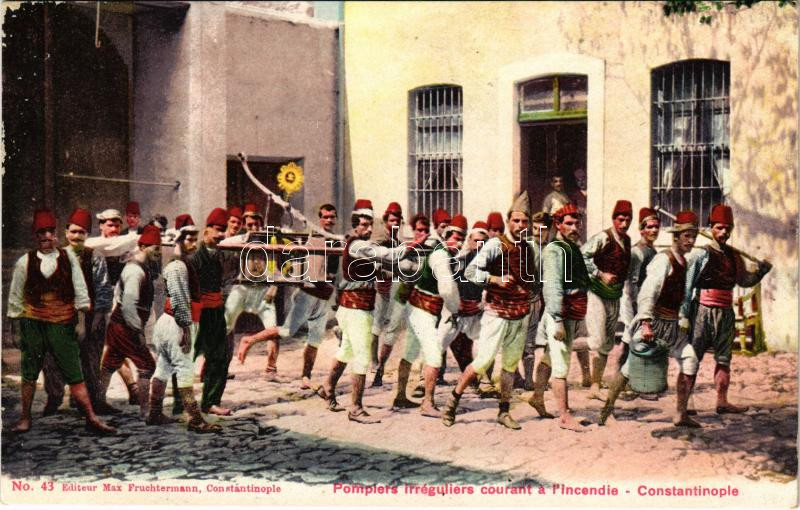 Beschreibung: Constantinople, Istanbul; Pompiers irréguliers courant a l'incendie / Önkéntes török tűzoltók rohannak a tűzhöz / Turkish volunteer firefighters