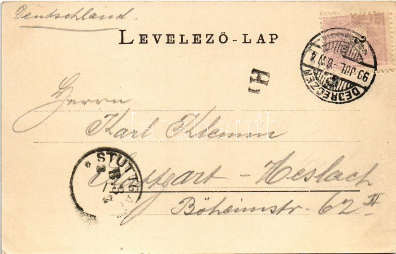 Beschreibung: 1899 (Vorläufer) Hortobágy, Pásztorok étkezése, Debreceni ekhós szekér, Pányvavetés, Ökörgulya, Kilenclyukú híd, magyar folklór. Art Nouveau, floral (EK)
