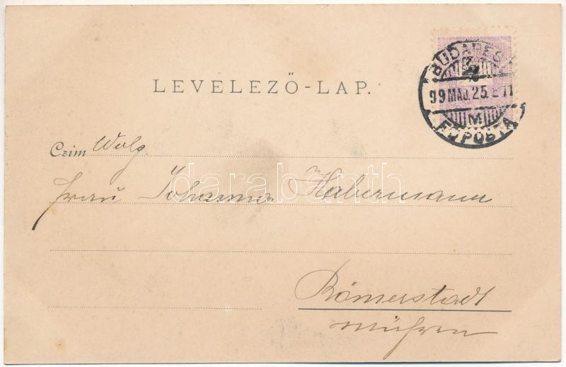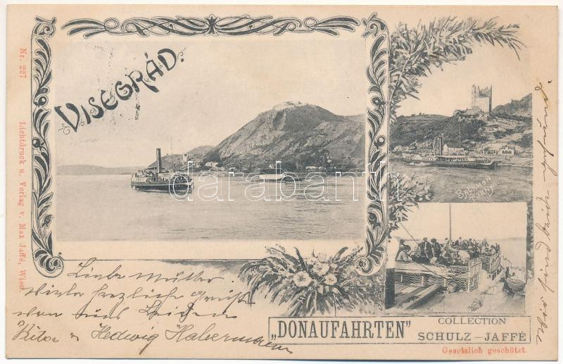 1899 (Vorläufer) Visegrád, "Visegrád" gőzüzemű oldalkerekes személyhajó a Salamon tornyánál és a várnál / "Donaufahrten". Lichtdruck u. Verlag v. Max Jaffé, Wien. Nr. 227. / on the board of passenger steamship "Visegrád". Schulz-Jaffe Collection. Art Nouveau, floral (fl)