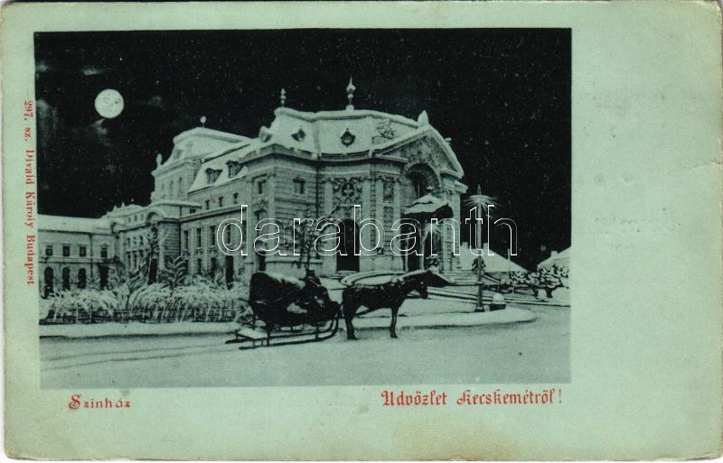1900 Kecskemét, színház este télen, lovas szán. Divald Károly 297. (EK... https://www.darabanth.com/de/41-Gross-Auktion/41.1/Ansichtskarten/Ungarn~16958/1900-Kecskemet-szinhaz-este-telen-lovas-szan-Divald-Karoly-297-EK~II2985139