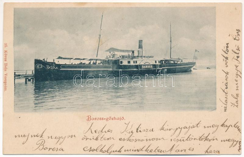 1901 Balaton, Baross gőzhajó. Köves Béla kiadása https://www.darabanth.com/de/41-Gross-Auktion/41.1/Ansichtskarten/Ungarn~16958/1901-Balaton-Baross-gozhajo-Koves-Bela-kiadasa~II3007029