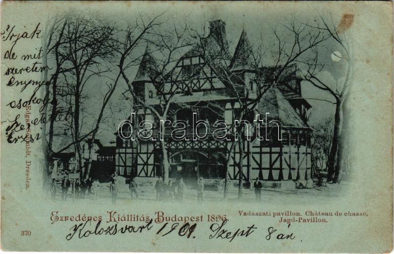 1901 Budapest XIV. Ezredéves Kiállítás 1896-ban, Vadászati pavilon est... https://www.darabanth.com/de/41-Gross-Auktion/41.1/Ansichtskarten/Ungarn~16958/1901-Budapest-XIV-Ezredeves-Kiallitas-1896-ban-Vadaszati-pavilon-este-fl~II3008326