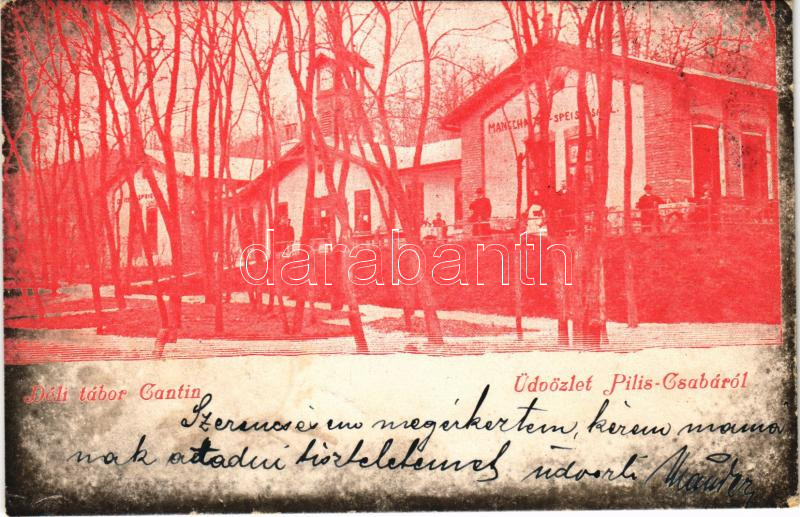 1901 Piliscsaba, Déli tábor kantin (EB) https://www.darabanth.com/de/41-Gross-Auktion/41.1/Ansichtskarten/Ungarn~16958/1901-Piliscsaba-Deli-tabor-kantin-EB~II2986480