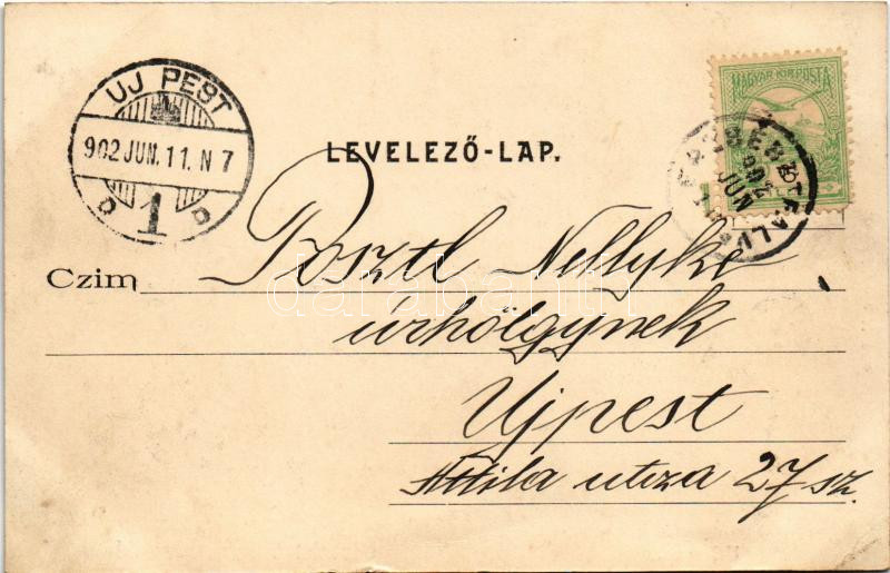 Beschreibung: 1902 Budapest XX. Pestszenterzsébet, Pesterzsébet, Erzsébetfalva; Úri utca Szent Erzsébet gyógyszertár, Havasy Ferenc üzlete és saját kiadása. Art Nouveau (EK)