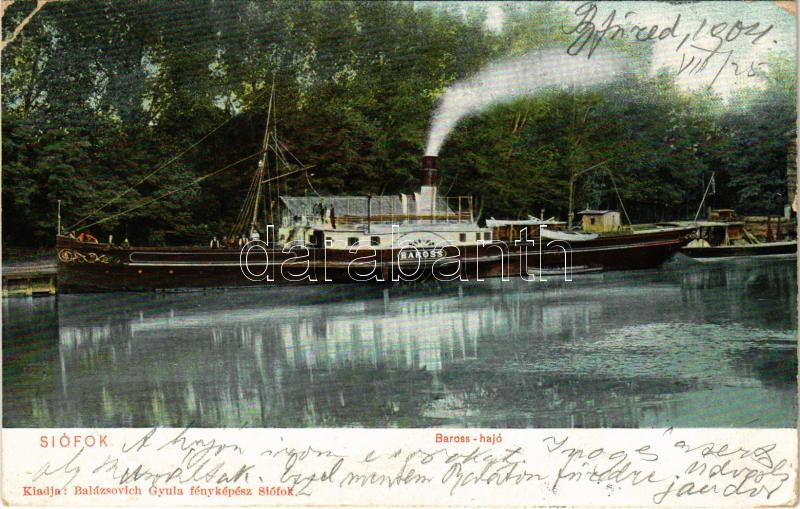 Beschreibung: 1904 Siófok, Baross hajó. Balázsovich Gyula fényképész kiadása (EK)