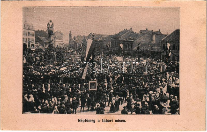 Beschreibung: 1913 Szombathely, Néptömeg a tábori misén. Kiadja a szombathelyi katolikus hölgyek sajtóbizottsága (EK)