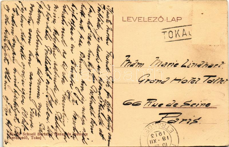 1913 Tokaj, Kis-Tokaji részlet, Első Tokaji Cognac Gyár (konyakgyár). ... https://www.darabanth.com/de/41-Gross-Auktion/41.1/Ansichtskarten/Ungarn~16958/1913-Tokaj-Kis-Tokaji-reszlet-Elso-Tokaji-Cognac-Gyar-konyakgyar-Schnell-Bertalan-kiadasa-~II3008196