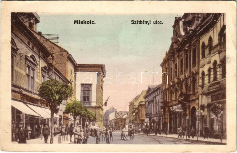1915 Miskolc, Széchenyi utca, Abbazia, fogorvos, üzletek (EB) https://www.darabanth.com/de/41-Gross-Auktion/41.1/Ansichtskarten/Ungarn~16958/1915-Miskolc-Szechenyi-utca-Abbazia-fogorvos-uzletek-EB~II3005701