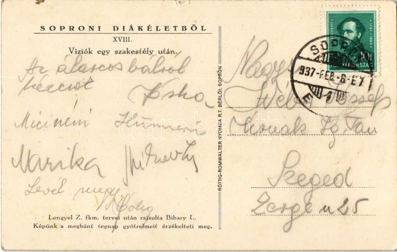 1937 Sopron, A soproni diákéletből XXVIII. Víziók egy szakestély után. Altai S. fkm. eredeti rajza Lengyel G. átdolgozásában. Röttig-Romwalter Nyomda rt. bérlői. Studentika (kis szakadás / small tear)