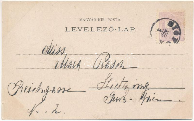 Beschreibung: ~1899 (Vorläufer) Siófok, B. Bárdossy Imre nyaraló telepe, villa. Weiss L. és F. kiadása, Art Nouveau floral (kis szakadások / small tears)