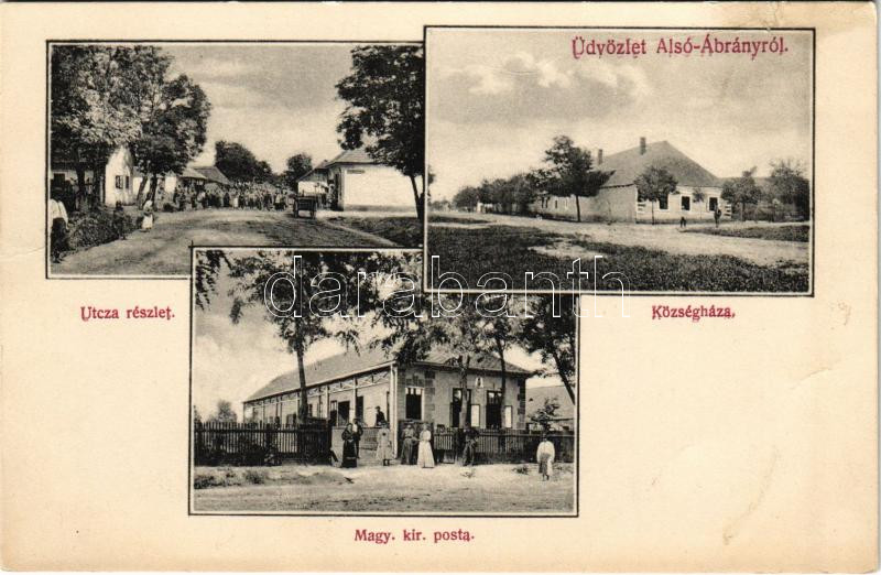 Alsóábrány (Bükkábrány), utca, magy. kir. posta, községháza (gyűrődése... https://www.darabanth.com/de/41-Gross-Auktion/41.1/Ansichtskarten/Ungarn~16958/Alsoabrany-Bukkabrany-utca-magy-kir-posta-kozseghaza-gyurodesek-creases~II2991619