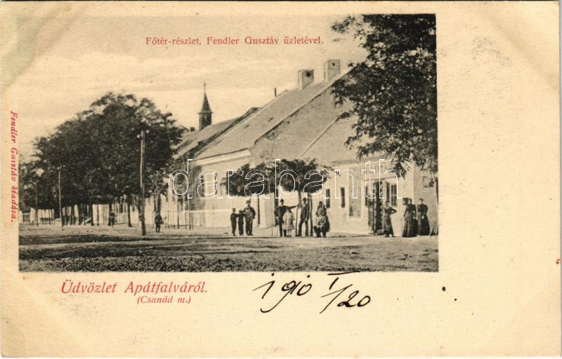 Apátfalva (Csanád), Fő tér, Fendler Gusztáv üzlete és saját kiadása (f... https://www.darabanth.com/de/41-Gross-Auktion/41.1/Ansichtskarten/Ungarn~16958/Apatfalva-Csanad-Fo-ter-Fendler-Gusztav-uzlete-es-sajat-kiadasa-fl~II3006147
