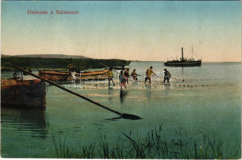 Balaton, halászok hálóval (fl) https://www.darabanth.com/de/41-Gross-Auktion/41.1/Ansichtskarten/Ungarn~16958/Balaton-halaszok-haloval-fl~II3007198