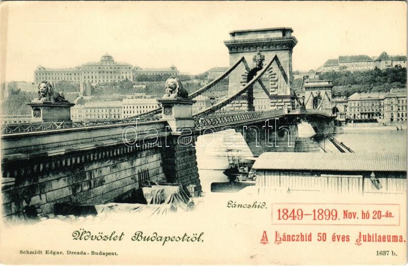 Budapest, Lánchíd + "1849-1899. november 20-án. A Lánczhíd 50 éve... https://www.darabanth.com/de/41-Gross-Auktion/41.1/Ansichtskarten/Ungarn~16958/Budapest-Lanchid-plus-1849-1899-november-20-an-A-Lanczhid-50-eves-Jubilaeuma-EK~II3005575