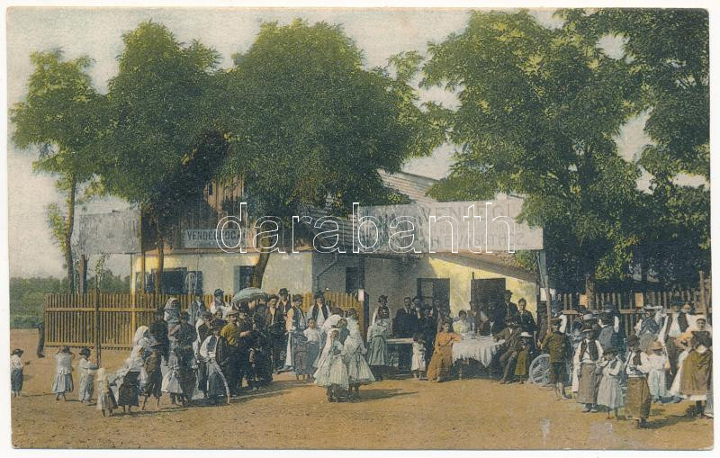 Beschreibung: Budapest XVI. Cinkota, Vendéglő a budapesti cinkotai H.É. Vasúthoz (HÉV, Helyiérdekű Vasút), étterem