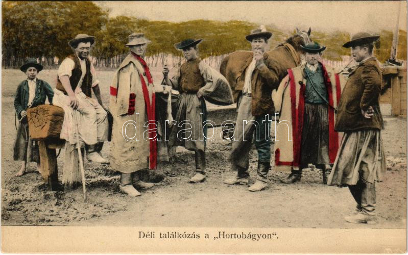 Hortobágy, Déli találkozás a Hortobágyon, magyar folklór https://www.darabanth.com/de/41-Gross-Auktion/41.1/Ansichtskarten/Ungarn~16958/Hortobagy-Deli-talalkozas-a-Hortobagyon-magyar-folklor~II3008050