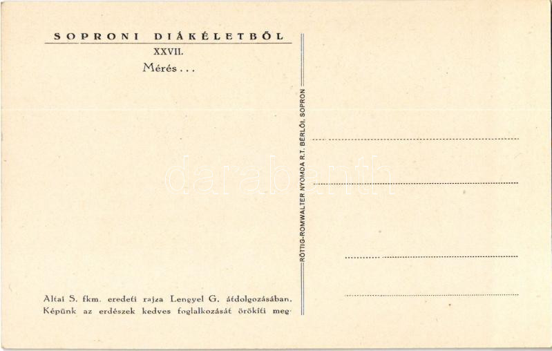 Sopron, A soproni diákéletből XXVII. Mérés... Altai S. fkm. eredeti ra... https://www.darabanth.com/de/41-Gross-Auktion/41.1/Ansichtskarten/Ungarn~16958/Sopron-A-soproni-diakeletbol-XXVII-Meres-Altai-S-fkm-eredeti-rajza-Lengyel-G-atdolgozC3~II3008310