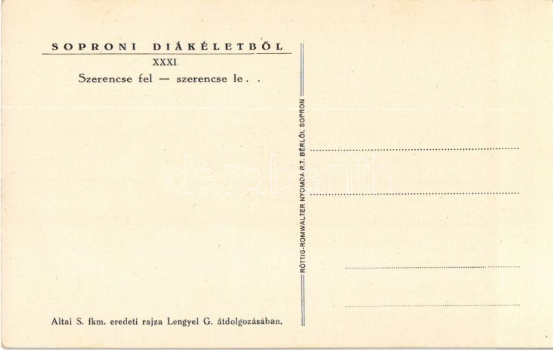 Sopron, A soproni diákéletből XXXI. Szerencse fel - szerencse le... Altai S. fkm. eredeti rajza Lengyel G. átdolgozásában. Röttig-Romwalter Nyomda rt. bérlői. Studentika
