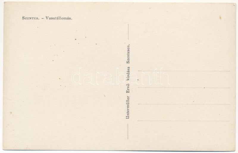 Szentes, vasútállomás utcafrontról nézve. Untermüller Ernő kiadása https://www.darabanth.com/de/41-Gross-Auktion/41.1/Ansichtskarten/Ungarn~16958/Szentes-vasutallomas-utcafrontrol-nezve-Untermuller-Erno-kiadasa~II3008044