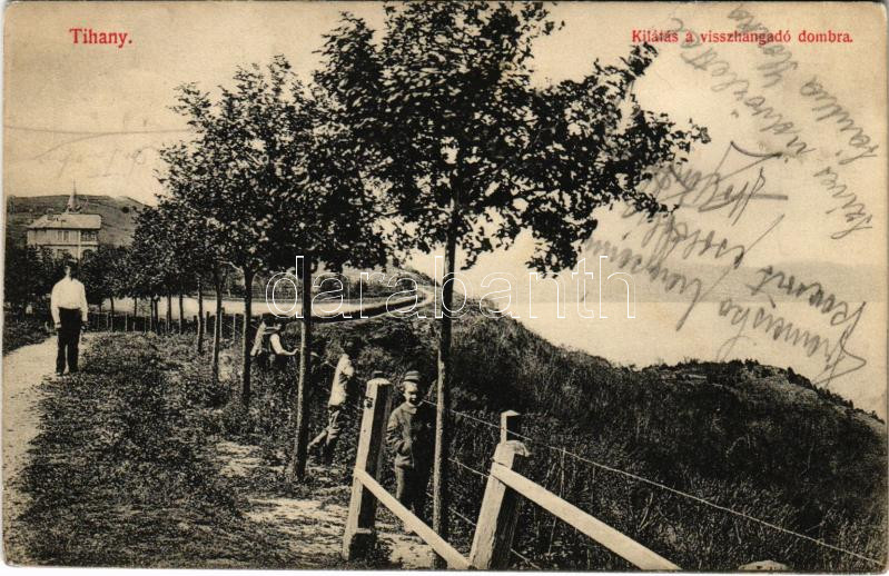 Tihany, kilátás a visszhangadó dombra. Mérei Ignác kiadása (fa) https://www.darabanth.com/de/41-Gross-Auktion/41.1/Ansichtskarten/Ungarn~16958/Tihany-kilatas-a-visszhangado-dombra-Merei-Ignac-kiadasa-fa~II2941142